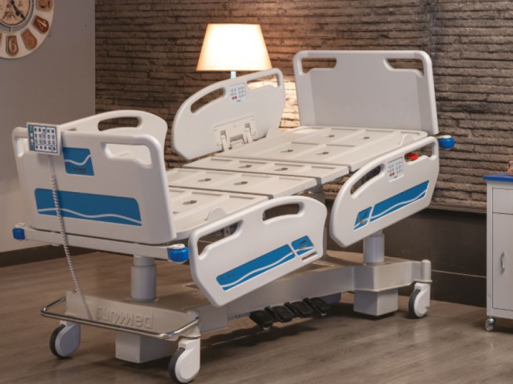Pat pentru pacienti, prevazut cu patru motoare pentru reglarea inaltimii, pozitiei Trendelenburg si anti-Trendelenburg, sectiunilor spate si genunchi, cu capete si protectii laterale confectionate din ABS.